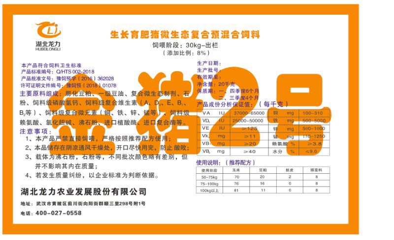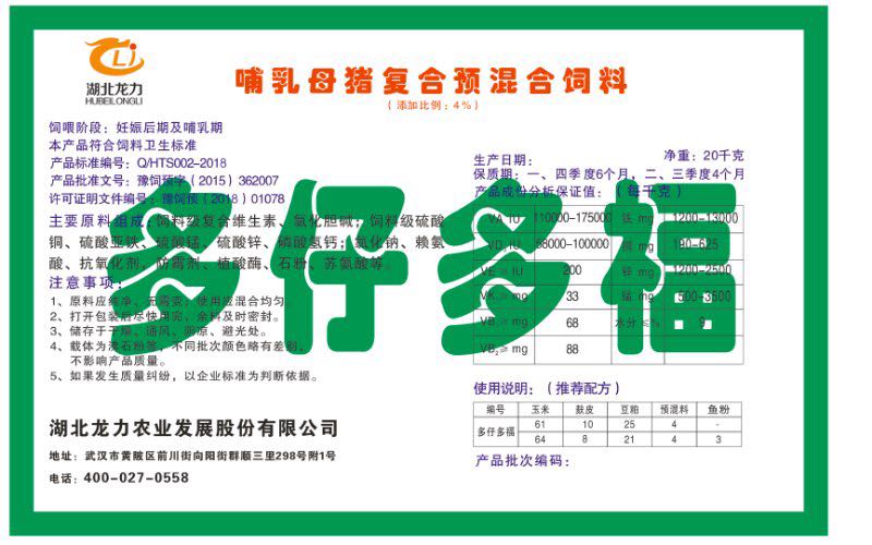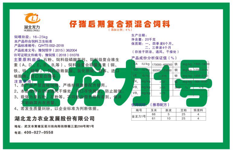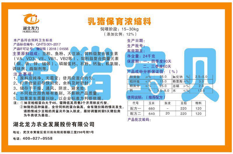 湖北龍力農(nóng)業(yè)發(fā)展股份有限公司坐落于武漢市黃陂區(qū)前川街向陽街群順三里298號附1號。公司成立于2014年6月,公司自成立以來把“創(chuàng)全球最大養(yǎng)豬綜合服務(wù)”為企業(yè)愿景。致力于打造教保料品牌”作為公司發(fā)展的明確目標(biāo)。公司一直致力于豬營養(yǎng)的研究和開發(fā),積極與國內(nèi)外高校和科研機(jī)構(gòu)合作,推廣養(yǎng)豬技術(shù)、動物營養(yǎng)新概念,向世界農(nóng)牧企業(yè)學(xué)習(xí)與合作。公司采用國內(nèi)先進(jìn)的生產(chǎn)工藝,選擇高精度電子配料秤,高均勻度、無殘留混合機(jī)等先進(jìn)設(shè)備....